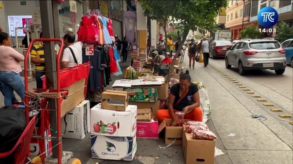 El comercio informal aumenta en las aceras del centro de Guayaquil. Frutas, legumbres e inclusive vestimentas son parte de los productos que se venden. Ciudadanos piden que los reubiquen por seguridad.