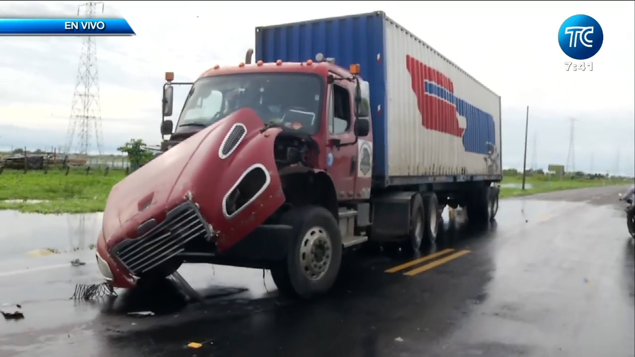 Un camión que transportaba camarón se impactó con un tráiler que estaba detenido a un lado de la estrecha vía. Se cree que el conductor no vio al tráiler debido a la intensa lluvia en ese momento.