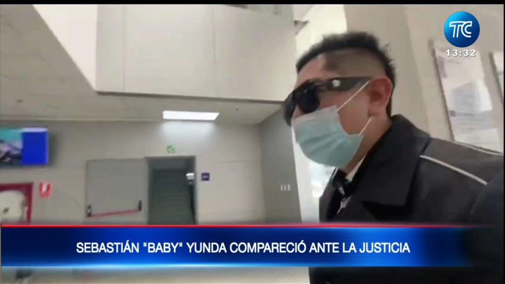 Sebastián Yunda, hiijo del exalcalde Jorge Yunda, se presenta a rendir declaración en Quito este 21 de abril. Fue llamado a juicio por presunta asociación ilícita. Él pago una fianza de USD 20 000 para poder regresar a Ecuador y no ser detenido en el aeropuerto.