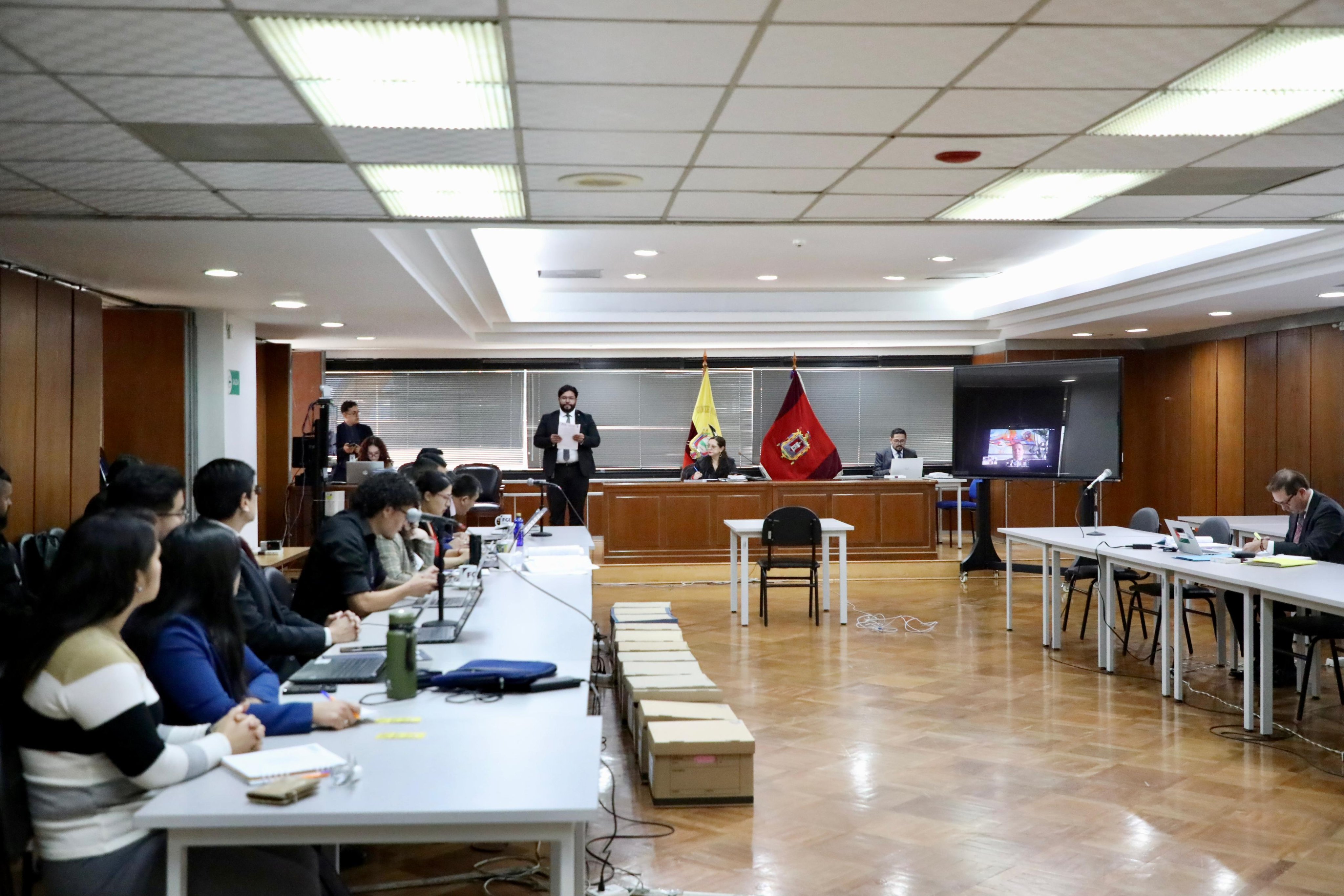 Las audiencias contaron con la presencia del Fiscal General del Estado (s), Wilson Toainga, y se realizaron en cumplimiento de las solicitudes de la #FiscalíaEc sobre la revisión de medidas cautelares y de caución de los procesados.