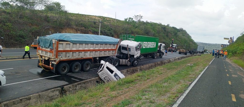 Un choque triple entre tres tráileres se registró este 6 de febrero en la vía Guayaquil-Salinas (E-40), a la altura del Km 79, en el sector de La Mona, en sentido Peaje Chongón – Progreso. Debido al impacto, uno de los carriles permanece cerrado, afectando la circulación vehicular en la zona.