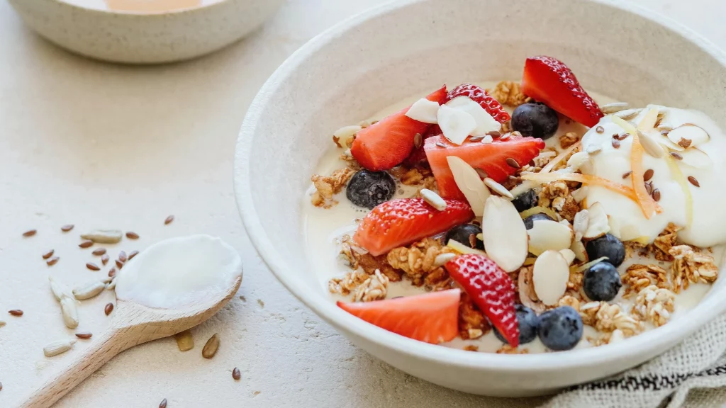 El yogur, elaborado a partir de leche fermentada con bacterias probióticas como Lactobacillus bulgaricus y Streptococcus thermophilus, es conocido por su contenido nutricional, que incluye calcio, proteínas, vitaminas B y minerales como magnesio, fósforo y potasio.
