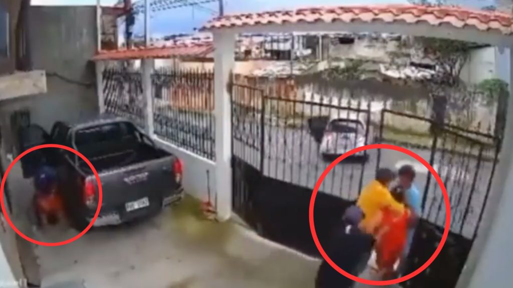 En el video también aparece un moto donde se embarca uno de los atacantes.