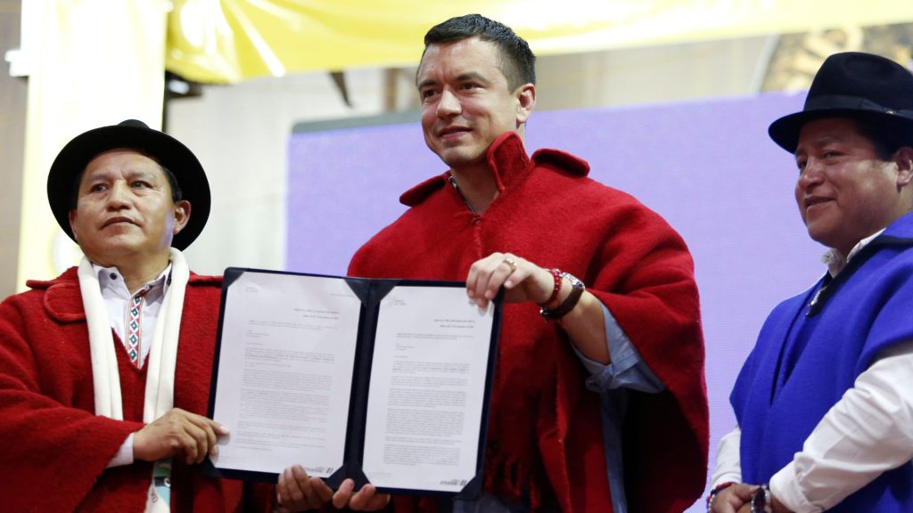 El Presidente Daniel Noboa oficializó este 18 de marzo de 2025 el reconocimiento del Consejo de Organizaciones y Pueblos Indígenas Evangélicos de Quisapincha (Copieq), otorgando el registro de directiva que estuvo paralizado desde 2016.