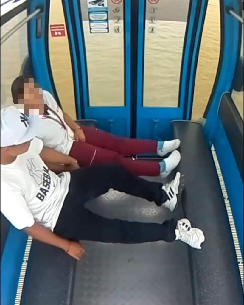 En el video se puede ver que el hombre observo que había una cámara, pues se encuentra a simple vista. Sin embargo, el joven y su pareja continuó . Luego de algunos minutos, reciben un llamado de atención por medio de un parlante.