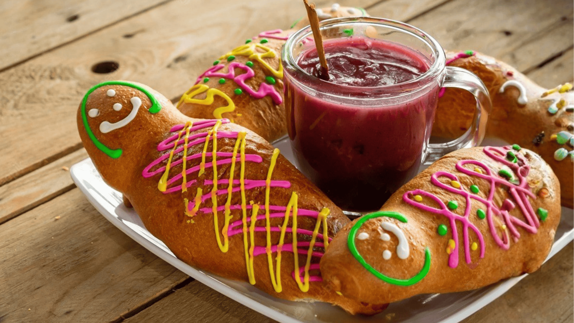 Este alimento se prepara y se comparte junto con la colada morada. En origen se conocía como pan de finados y se llevaba a los cementerios como ofrenda.