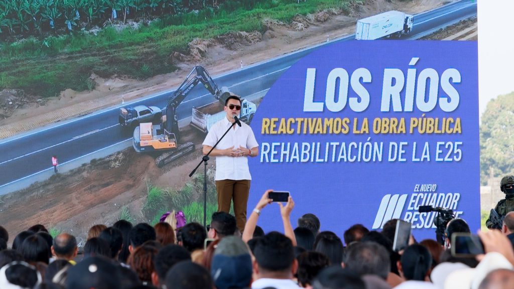 El Presidente Daniel Noboa visitó este 22 de noviembre el tramo Buena Fe–Jujan del corredor vial E25, donde constató el avance de los trabajos de rehabilitación y ampliación. El proyecto abarca la ampliación a cuatro carriles del tramo San Juan-Babahoyo, el acondicionamiento de infraestructura existente y la construcción de carriles de rebasamiento en el tramo Quevedo-San Juan. En total, 128 kilómetros serán intervenidos, beneficiando a aproximadamente 500.000 habitantes de la provincia de Los Ríos.