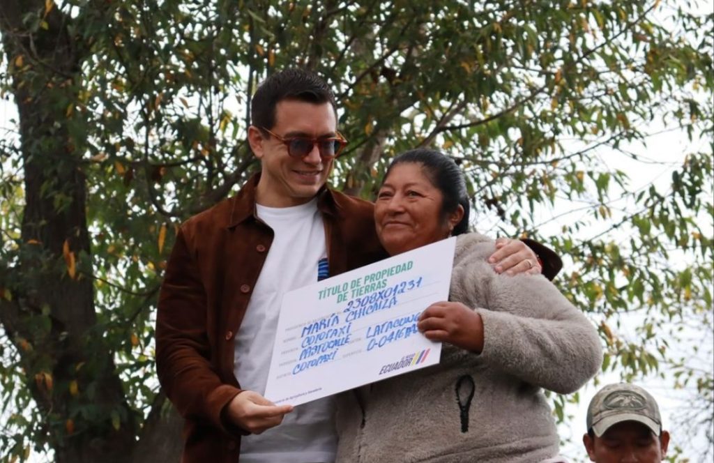 En el Centro Agrícola Cantonal «Quinta Locoa», el primer mandatario entregó 400 títulos de propiedad para adjudicatarios que contribuyen a la reactivación productiva del agro. Esta iniciativa pertenece al Proyecto de Regularización de Tierras Rurales y Territorios Ancestrales con el objetivo de promover la seguridad jurídica de los predios rurales a nivel nacional. Además, se otorgó otros insumos para los agricultores.