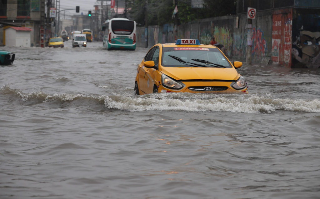 Algunas personas tuvieron que empujar los carros y otros esperar que baje la lluvia.
