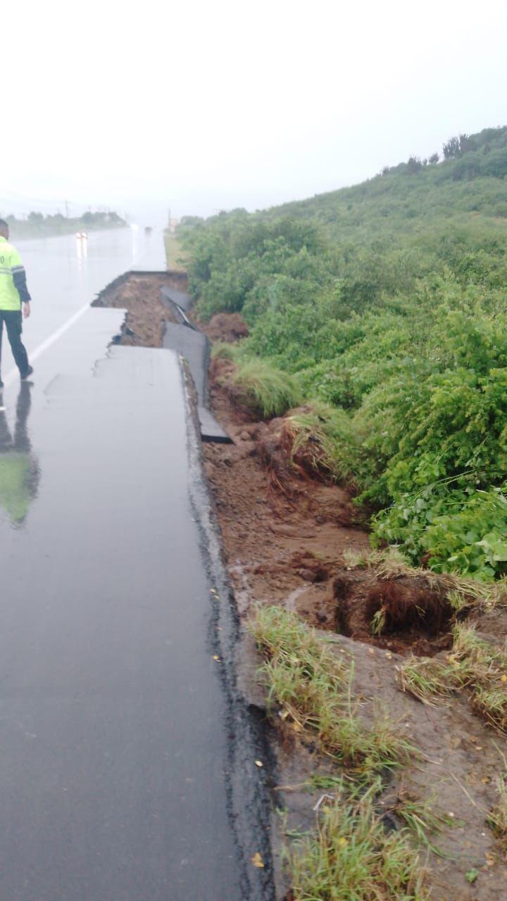 La Comisión de Tránsito del Ecuador (CTE) informó que pasando esa comunidad se registró un desprendimiento del asfalto tras las fuertes lluvias.