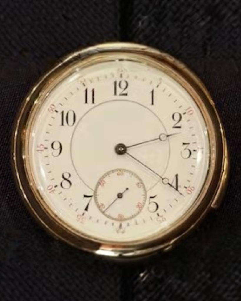 El reloj, fabricado en oro de 18 quilates por la casa suiza Jules Jürgensen, se recuperó del cuerpo de Straus días después del naufragio. Sus manecillas quedaron marcadas en las 02:20 a.m., el momento en el que el Titanic desapareció bajo las aguas del Atlántico tras impactar contra un iceberg la noche del 14 de abril de 1912.