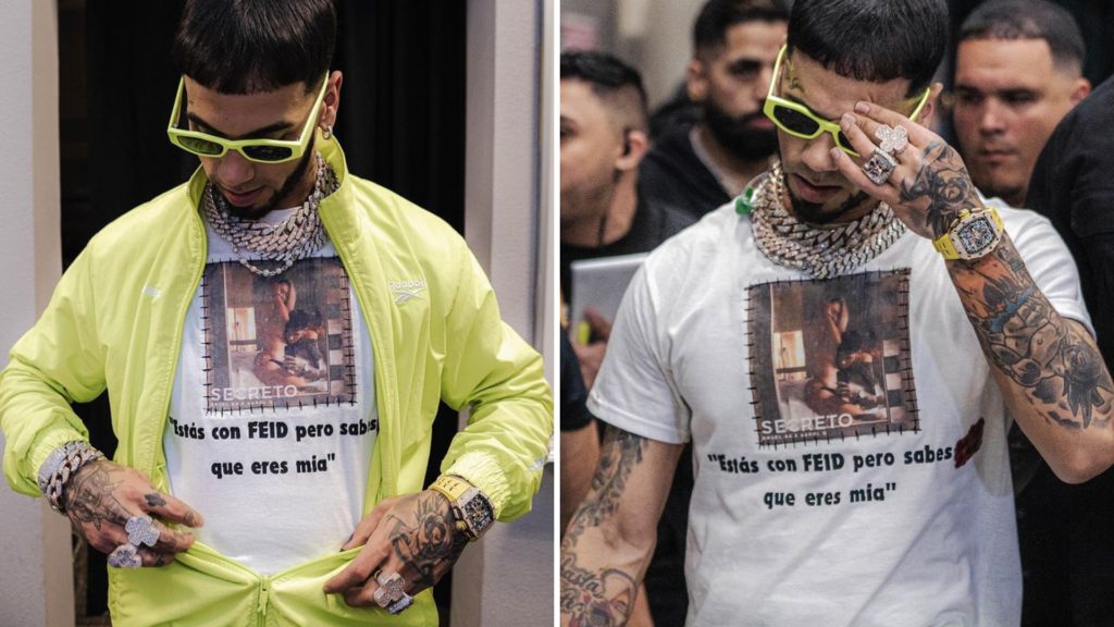 “Estás con Feid pero sabes que eres mía” – La camisa de Anuel en su presentación en los Premios Tu Música Urbano 2023 pic.twitter.com/VPyOEnxUem