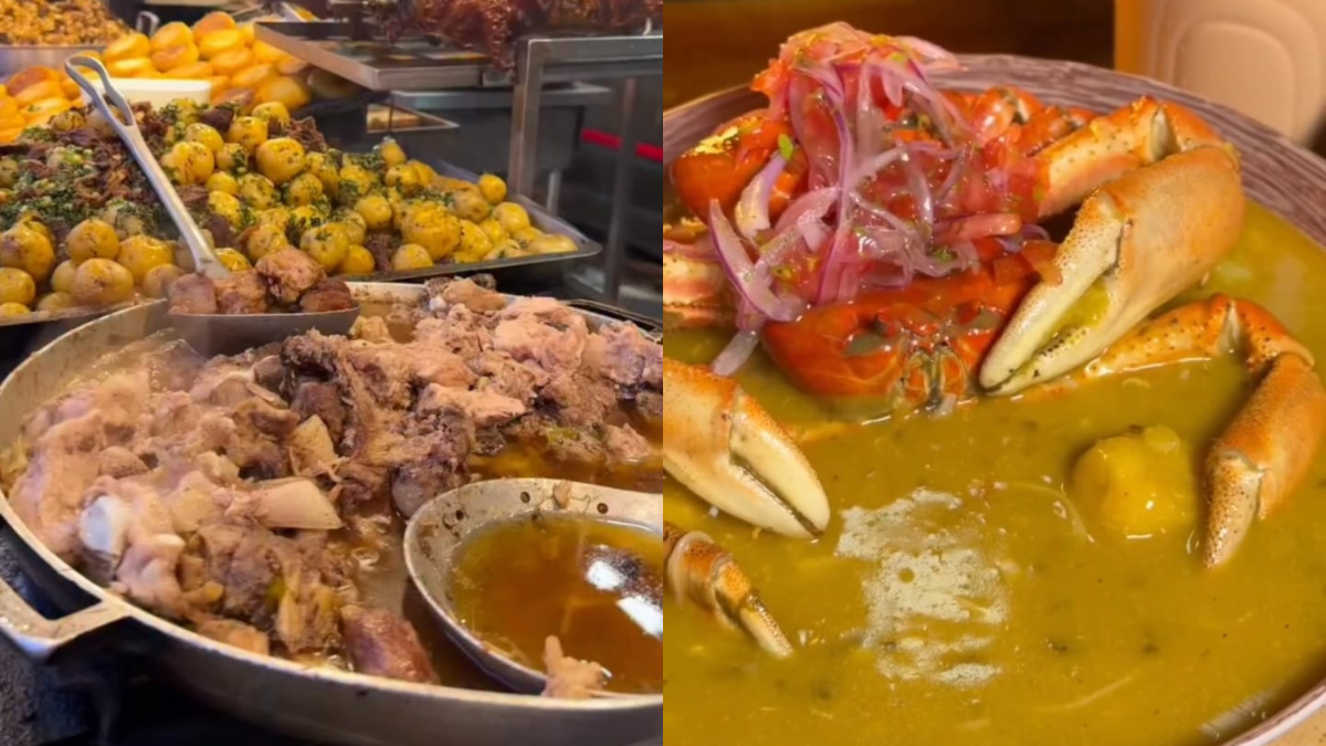 El video deja ver que el recorrido gastronómico fue guiado por un compatriota, ya que incluye platos profundamente ligados a la tradición local. Entre ellos destacan el chupe de pescado, el arroz marinero, el encocado, el seco de chivo y el seco de pollo. Además, el acompañamiento clásico de los llapingachos, representando distintas regiones del Ecuador.