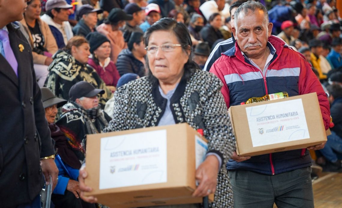 Como parte de la respuesta humanitaria, el Gobierno entrega kits de primera respuesta, que incluyen productos básicos como arroz, atún, fréjol rojo, aceite y sardina, destinados a las familias cuyos sembríos resultaron afectados por las heladas registradas en diciembre.