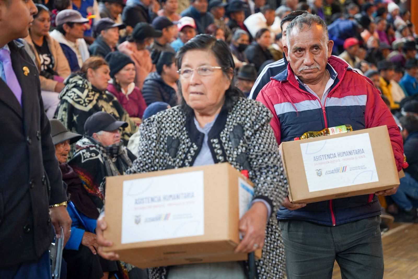Como parte de la respuesta humanitaria, el Gobierno entrega kits de primera respuesta, que incluyen productos básicos como arroz, atún, fréjol rojo, aceite y sardina, destinados a las familias cuyos sembríos resultaron afectados por las heladas registradas en diciembre.