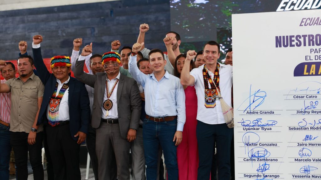 “Esto no es una promesa, es un hecho. Queremos que las comunidades de la Amazonía cuenten con agua potable, con servicios de salud de calidad y, al mismo tiempo, tengan ingresos dignos por su actividad económica”, afirmó Noboa durante el evento, que contó con autoridades locales, delegaciones comunitarias y representantes amazónicos.
