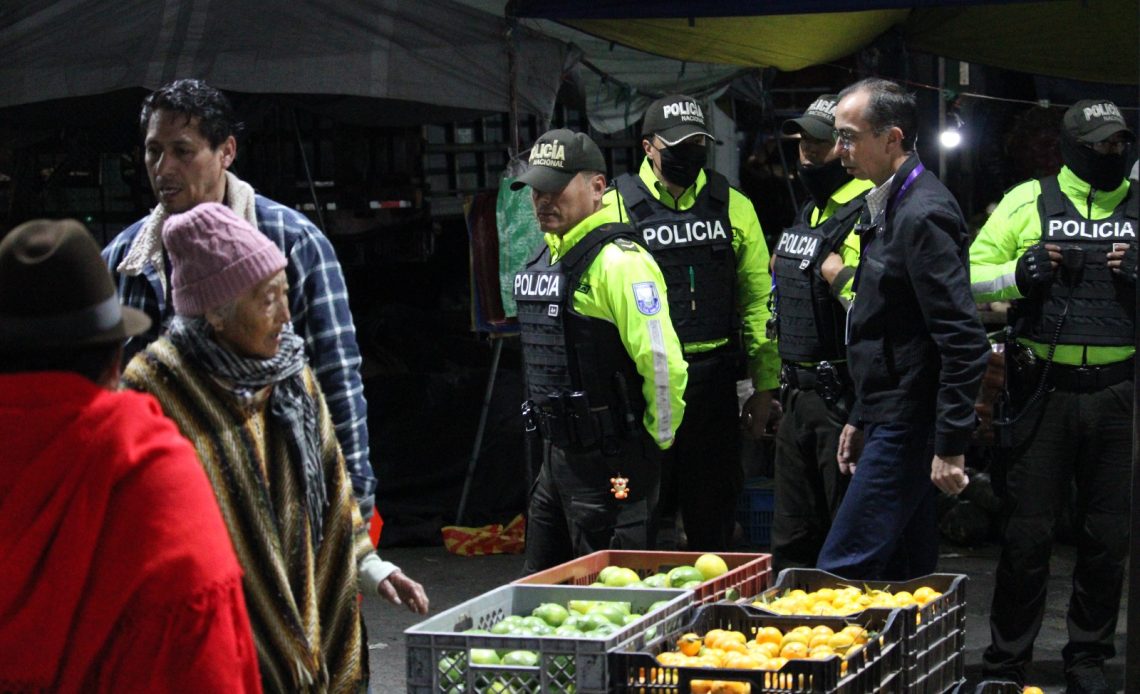 La madrugada de este viernes, el intendente de Policía de Pichincha, Mauricio Montalvo, encabezó inspecciones en los mercados de Ofelia y Cotocollao, verificando el cumplimiento de precios justos, peso exacto y calidad garantizada en los productos.