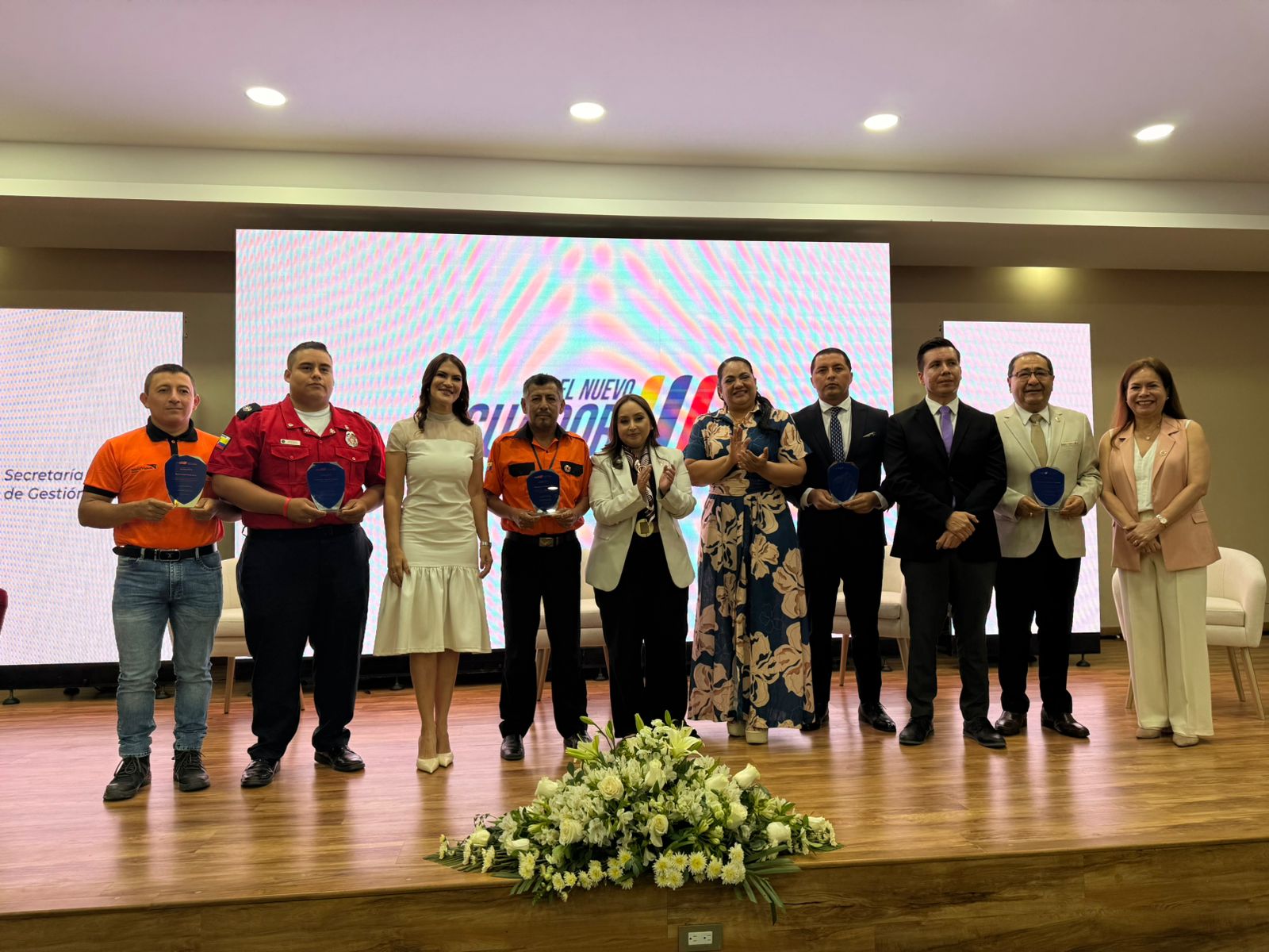 Durante la conmemoración también se rindió homenaje a actores que participaron en la respuesta al desastre. Entre ellos estuvieron los Cuerpos de Bomberos de Portoviejo y Manta, la red de Comités Comunitarios y el Voluntariado de Protección Civil. La Secretaría resaltó su papel durante la emergencia y en el acompañamiento a las familias afectadas.