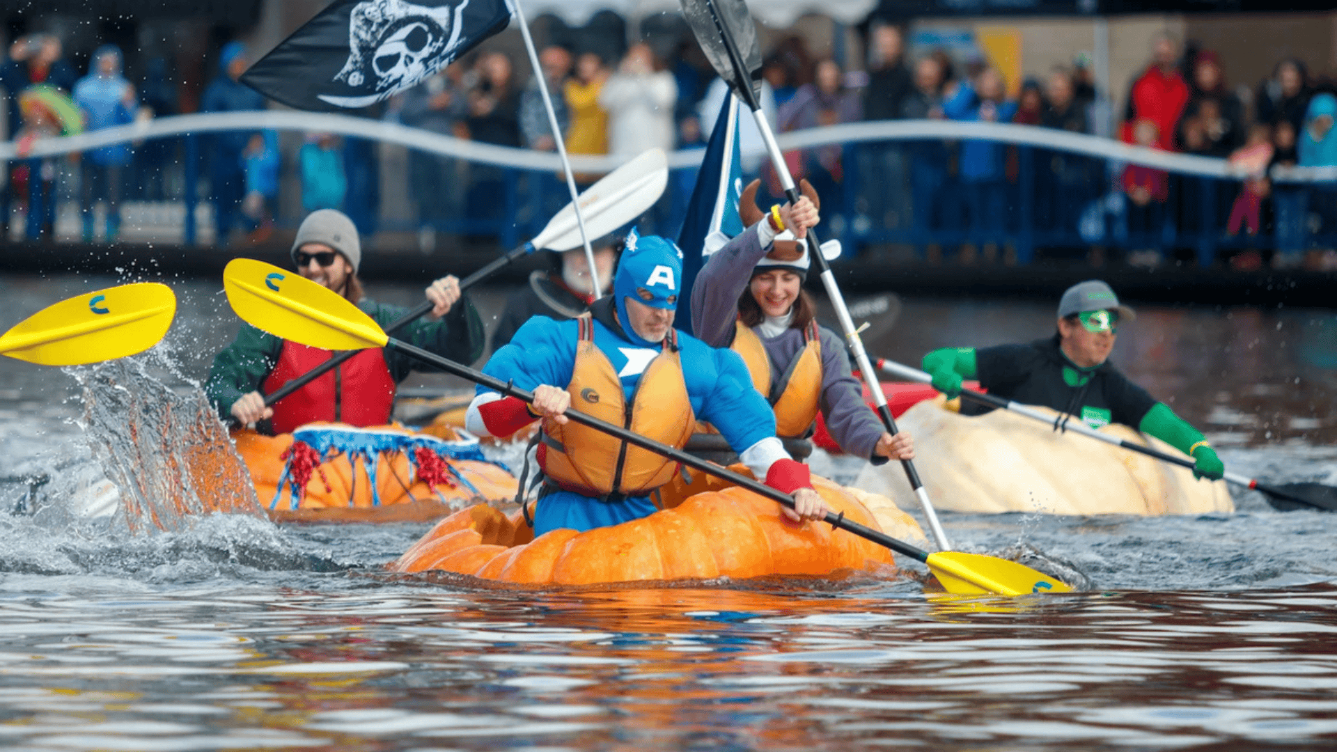La llamada Pompoenregatta es una carrera en formato de postas de 100 metros. Los equipos compiten remando dentro de auténticas calabazas gigantes convertidas en “canoas” tras vaciarlas. Gana el conjunto con el mejor tiempo o el mejor disfraz, porque el humor también puntúa en la fiesta.