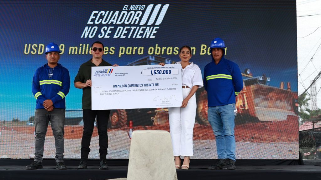 Durante el acto simbólico, el BDE entregó el primer desembolso de USD 1,5 millones al GAD Municipal de Baba, lo que permite el arranque inmediato de los trabajos.