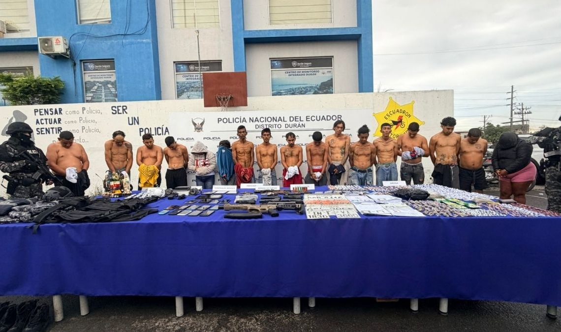 El operativo Apolo 1.0, ejecutado en Guayaquil y Durán, dejó 36 personas detenidas y el decomiso de armas de fuego, droga, vehículos robados y material explosivo, informó el ministro del Interior, John Reimberg.