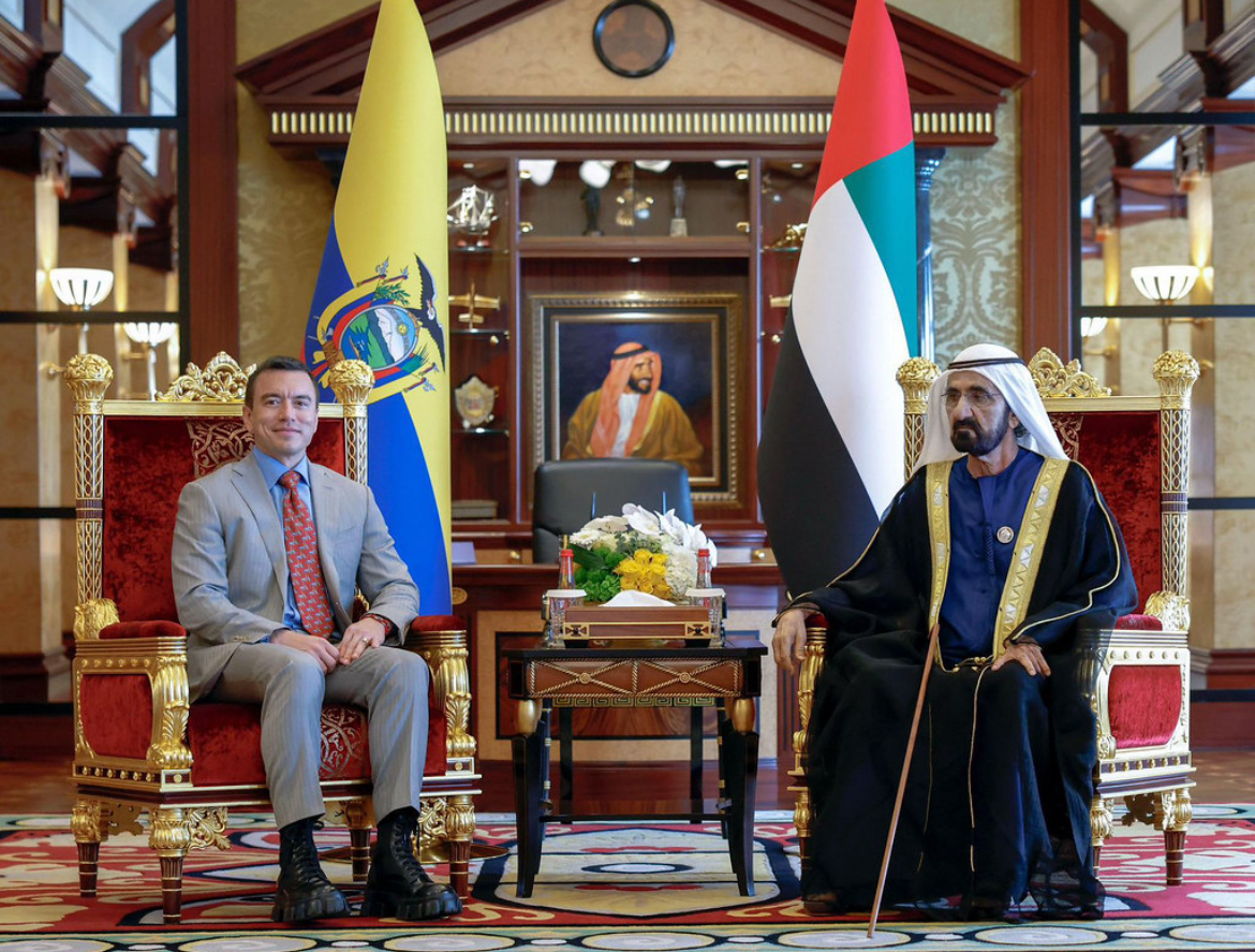 Posteriormente, el mandatario ecuatoriano mantuvo una reunión bilateral estratégica con Su Alteza Mohammed Bin Rashid Al Maktoum, quien ejerce como vicepresidente y primer ministro de EAU, además de ser el gobernante de Dubái.