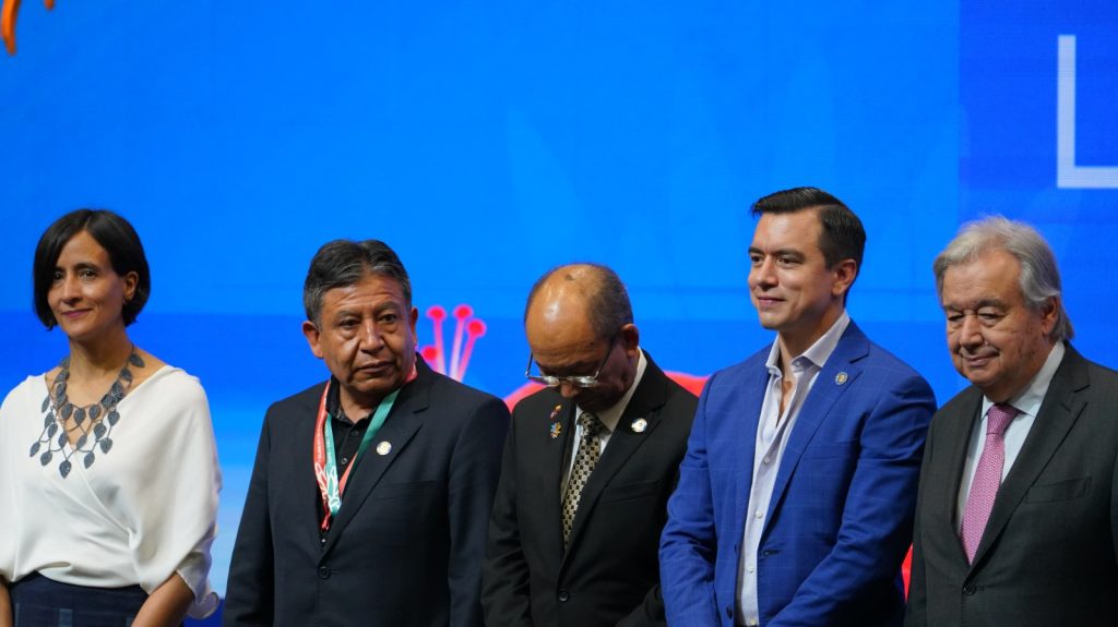 El Presidente Daniel Noboa también se refirió a los problemas de generación de empleo adecuado para los jóvenes (…) Si nosotros preservamos a las personas, si mejoramos la vida de los jóvenes, ellos van a poder preservar el medio ambiente».