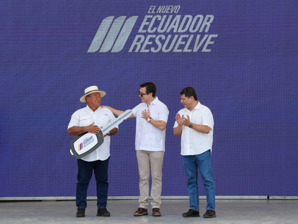 Además, el Presidente Noboa anunció la entrega de más de 4 millones de dólares en créditos a través del programa «Súper Mujer Rural» de BanEcuador, beneficiando a más de 1.500 mujeres emprendedoras del ámbito rural.