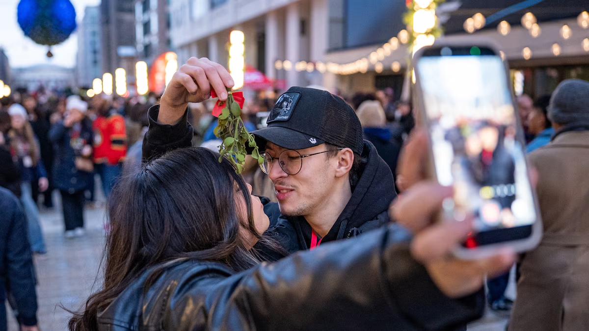 Las imágenes del beso colectivo recorrieron redes sociales y medios internacionales. Convirtiendo el evento en uno de los momentos más llamativos de las celebraciones navideñas de 2025 en Estados Unidos.