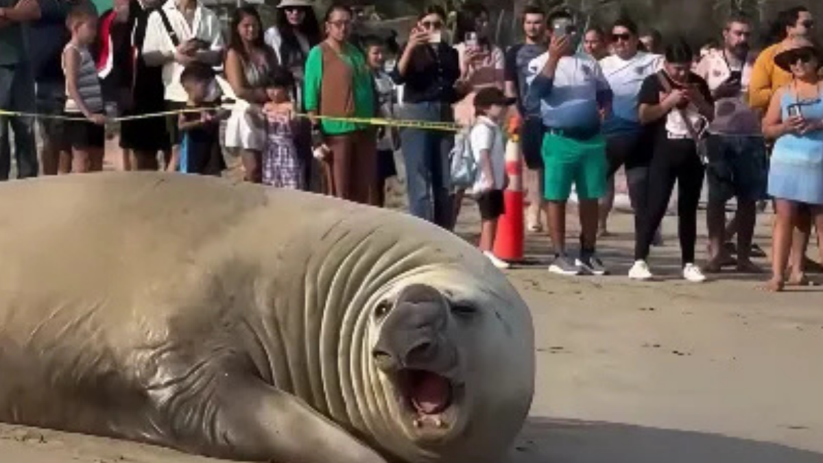 Quienes llegaron temprano a la playa no esperaban encontrarse con un visitante enorme tomando sol, como si fuera un turista más. En minutos, la escena atrajo miradas, celulares y curiosidad. Autoridades monitorean al animal desde que se le vio recostado en la arena y confirmaron que está estable.