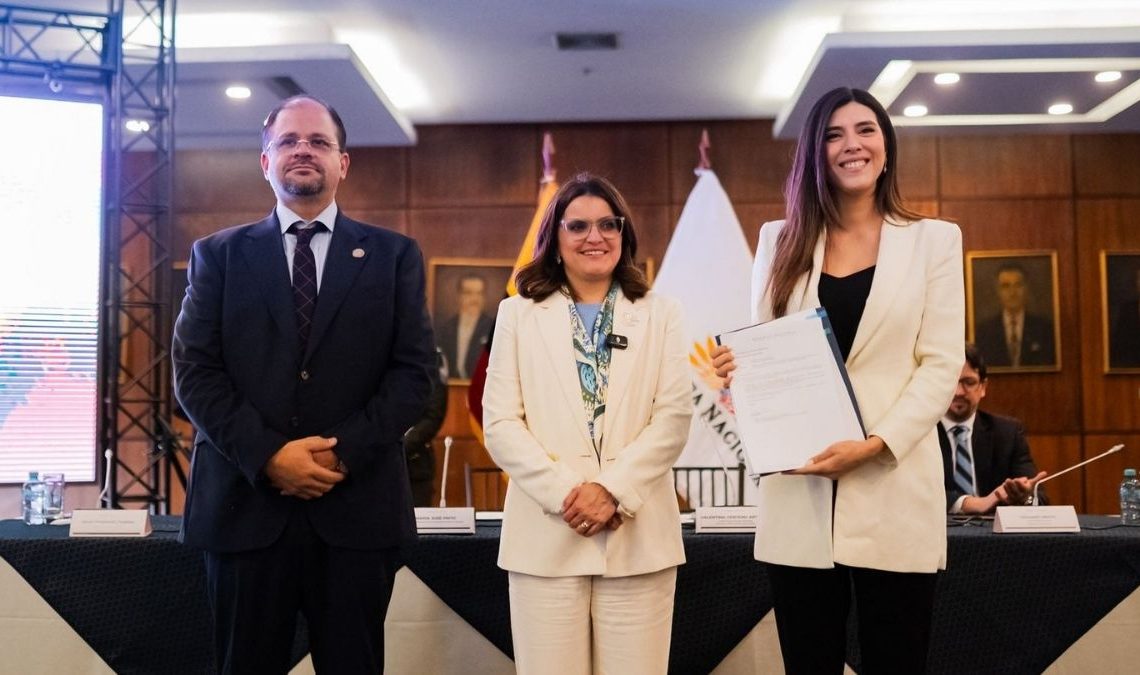 El proyecto fue entregado en el Salón Tránsito Amaguaña de la Asamblea Nacional por la vicepresidenta de la República, María José Pinto, y el ministro del Interior, Jhon Reimberg, con la presencia de autoridades de Estado.