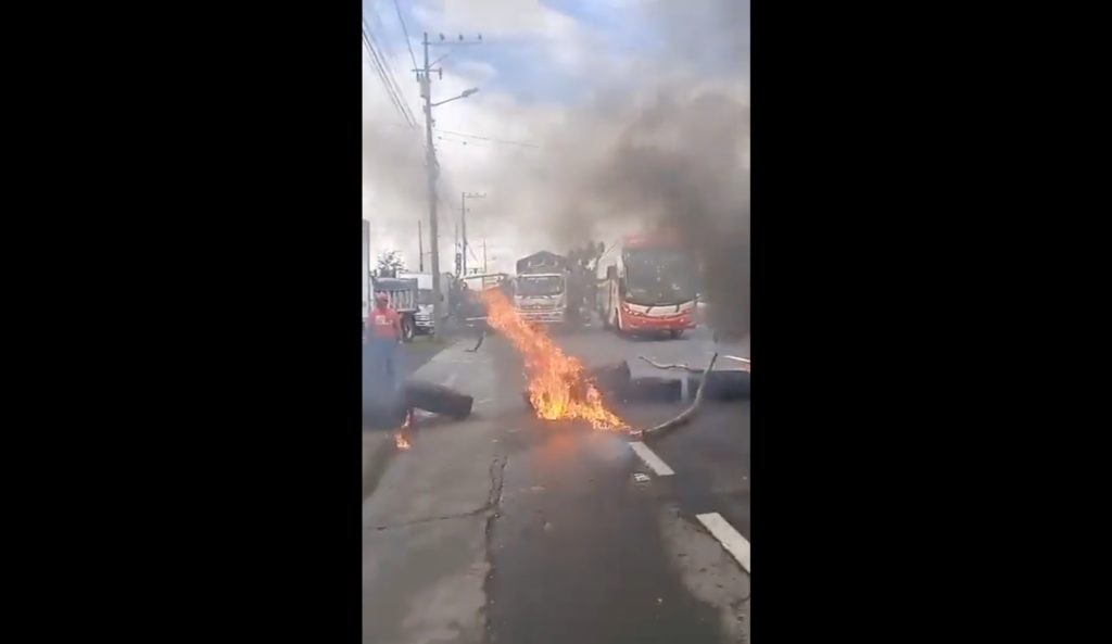 Los protestantes incendiaron llantas y pusieron troncos para impedir el paso de esta vía que conecta la Sierra con la Costa ecuatoriana.