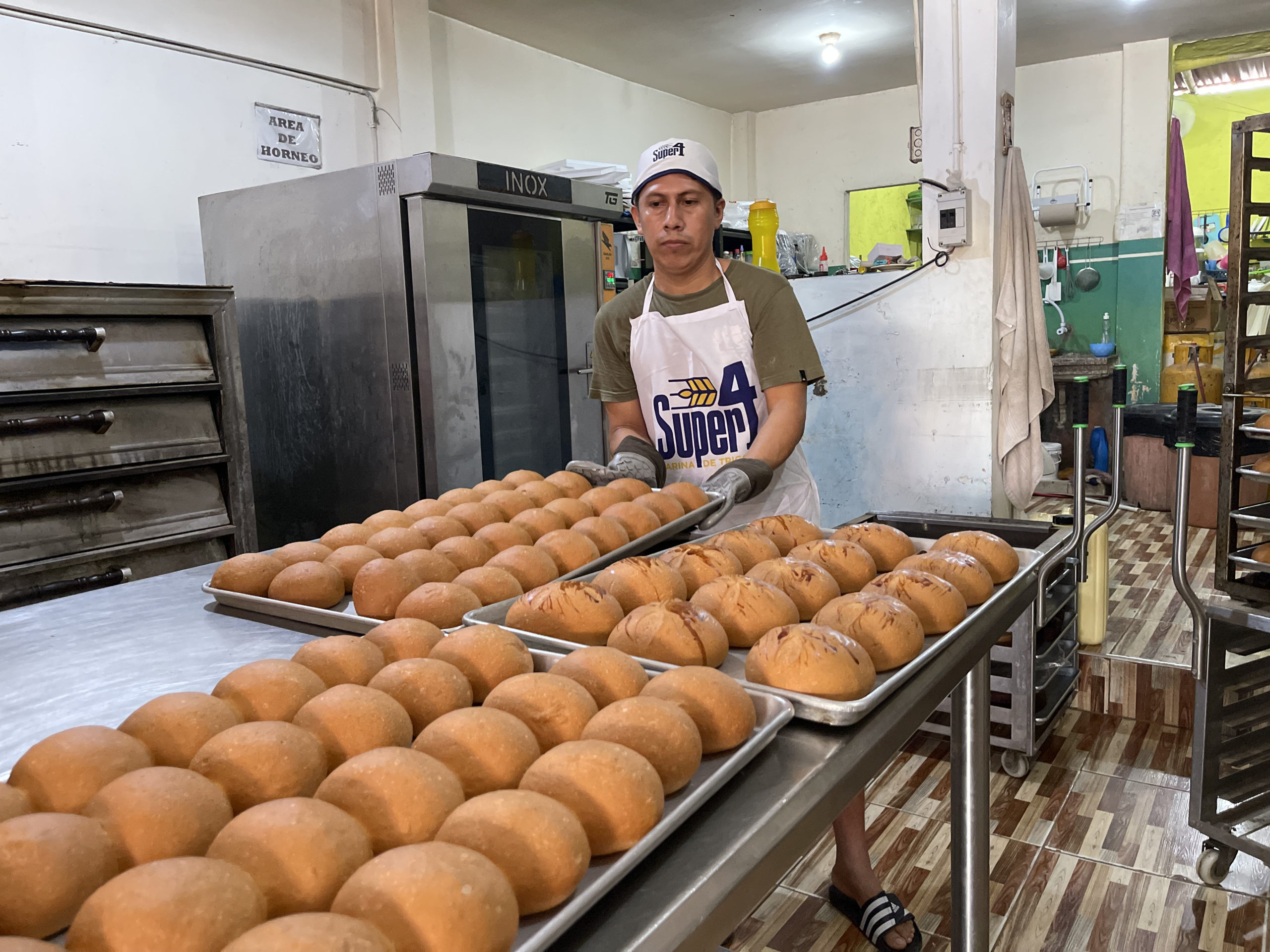 En la panadería se coloca cuatro panes en una funda y los venden a 50 centavos, siendo la atracción en el mercado donde la mitad de sus habitantes se dedica a la panificación.