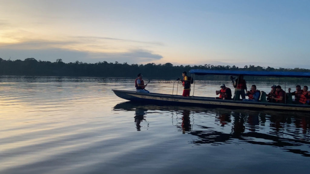 La laguna de Limoncocha tiene más de 25 metros de profundidad. Con sus aguas serenas y su exuberante vegetación, este sitio se transforma al caer la tarde.