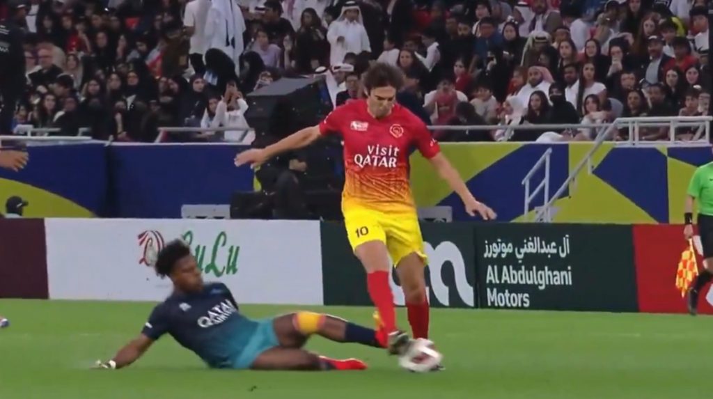 El famoso youtuber y streamer de internet, Darren Jason Watkins Jr., conocido en línea como IShowSpeed le fabricó una durísima entrada por atrás al histórico jugador brasileño Kaká en un partido benéfico disputado en Qatar y organizado por la Education Above All Foundation (EAA).