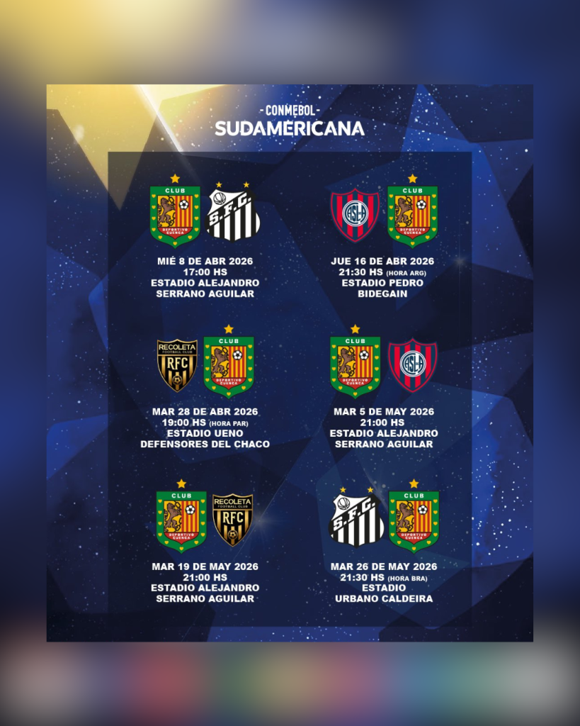 Macará y Deportivo Cuenca ya conocen su calendario completo en la fase de grupos de la Copa Sudamericana 2026, donde buscarán avanzar a la siguiente ronda.