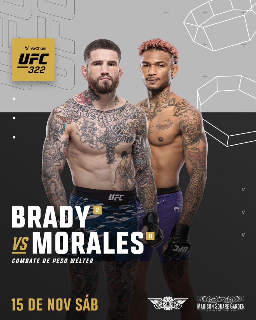 Morales viene de una victoria espectacular por K.O. técnico contra el experimentado Gilbert Burns el pasado 15 de mayo de 2025. Por su parte, Brady ha ganado tres peleas consecutivas desde que perdió su único combate, precisamente contra Belal Muhammad.